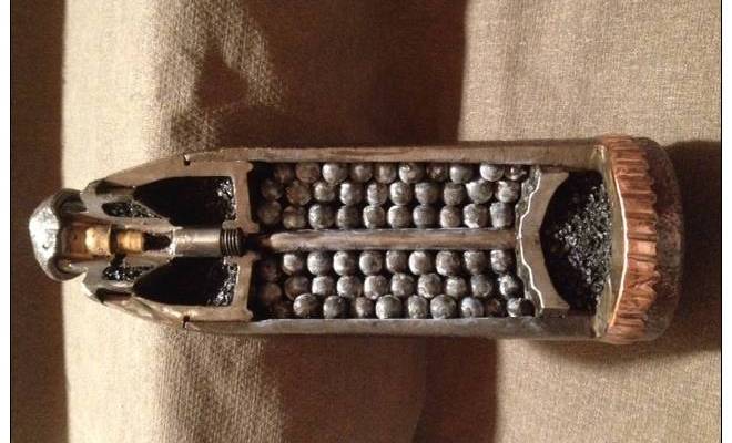 In 1784, while a lieutenant in the Royal Artillery, he perfected, with his own resources, an invention of what he called “spherical case” ammunition: a hollow cannonball filled with lead shot that burst in mid-air. He successfully demonstrated this in 1787 at Gibraltar.[2][n 1] He intended the device as an anti-personnel weapon. In 1803, the British Army adopted a similar but elongated explosive shell which immediately acquired the inventor’s name.[5] It has lent the term shrapnel to fragmentation from artillery shells and fragmentation in general ever since, long after it was replaced by high explosive rounds. Until the end of World War I, the shells were still manufactured according to his original principles.
