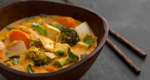 While Indian dishes tend to use more dry spices, Thai cuisine often uses curry paste and fresh herbs instead. Thai curries are cooked for a shorter period of time and typically include vegetables, chicken, seafood accented with fresh herbs like mint, cilantro and basil. They also tend to be soupier, thanks to the addition of coconut milk or water.