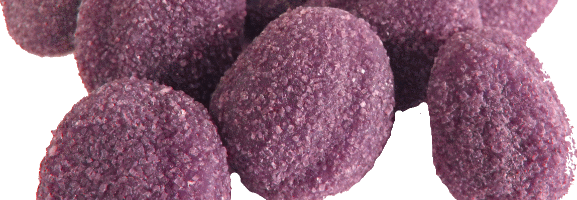 A hardened sugar ball shaped like a plum, where a “plum” is equivalent to a spherical form rather than the fruit. It must be related, in some way, to a plumb bob: